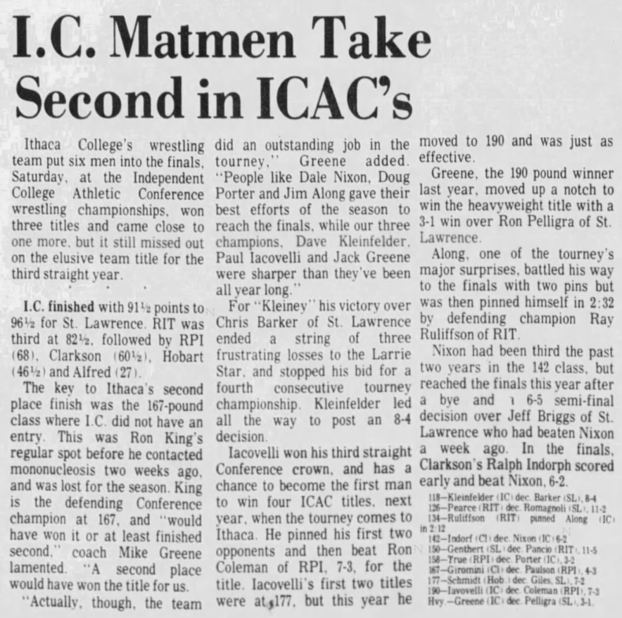 Paul Iacovelli (IC) > Bob Coleman (RPI) decision 7-3
