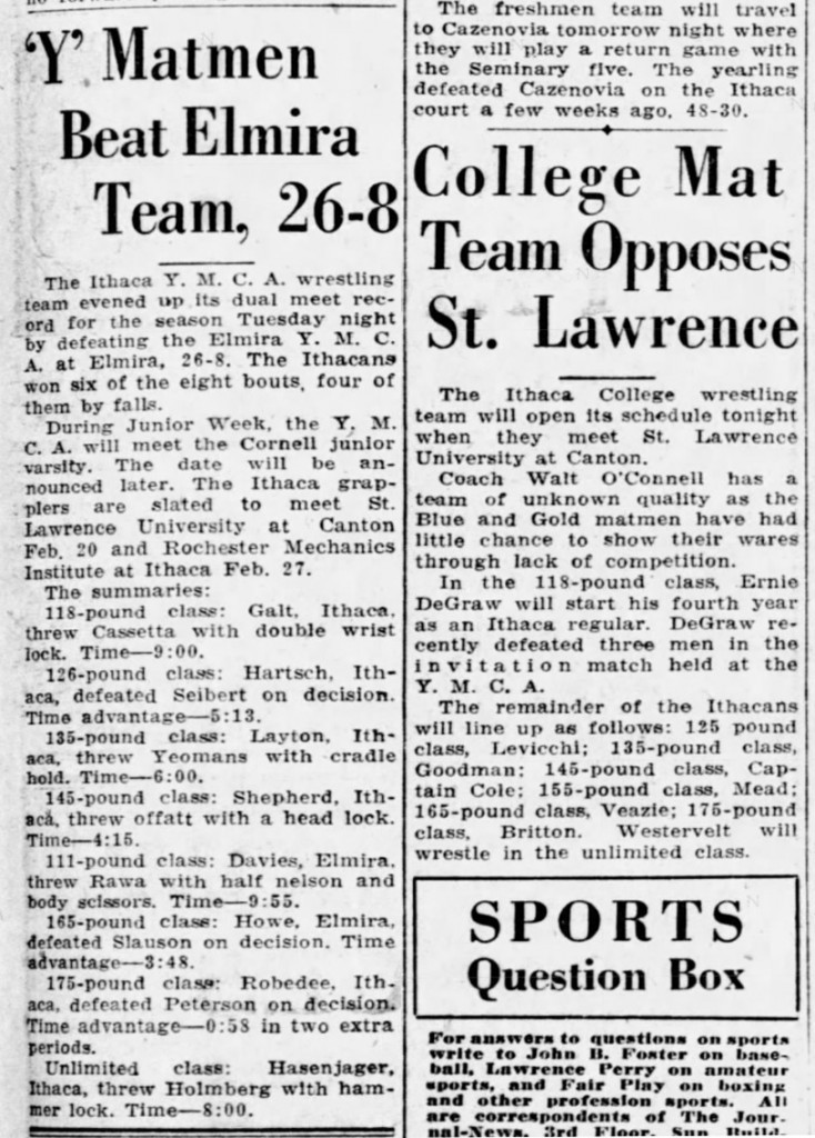 Ernie DeGraw (IC) > John G. "Jerry" Benack (SLU) time advantage decision 7:11