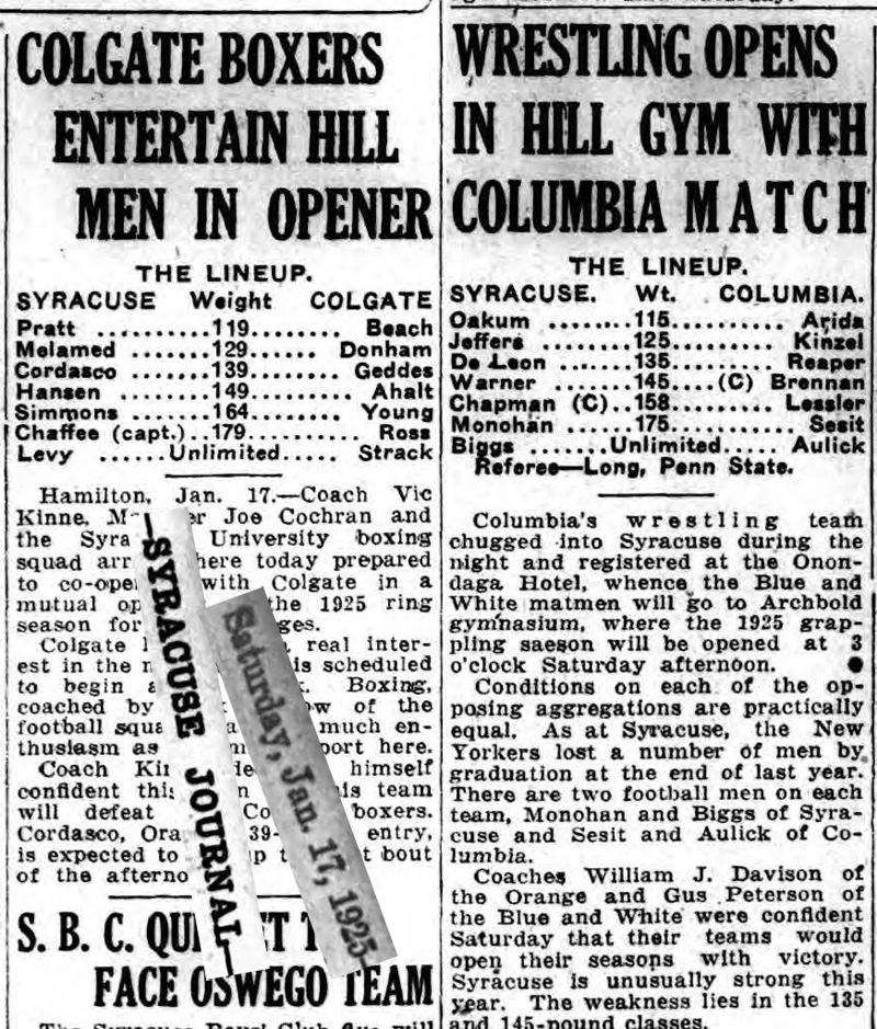 Columbia University 14, Syracuse University 13