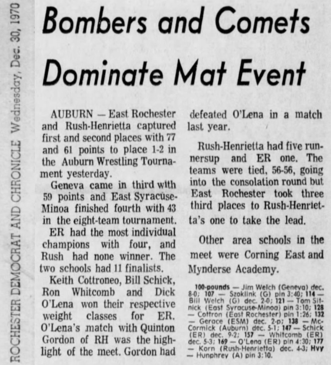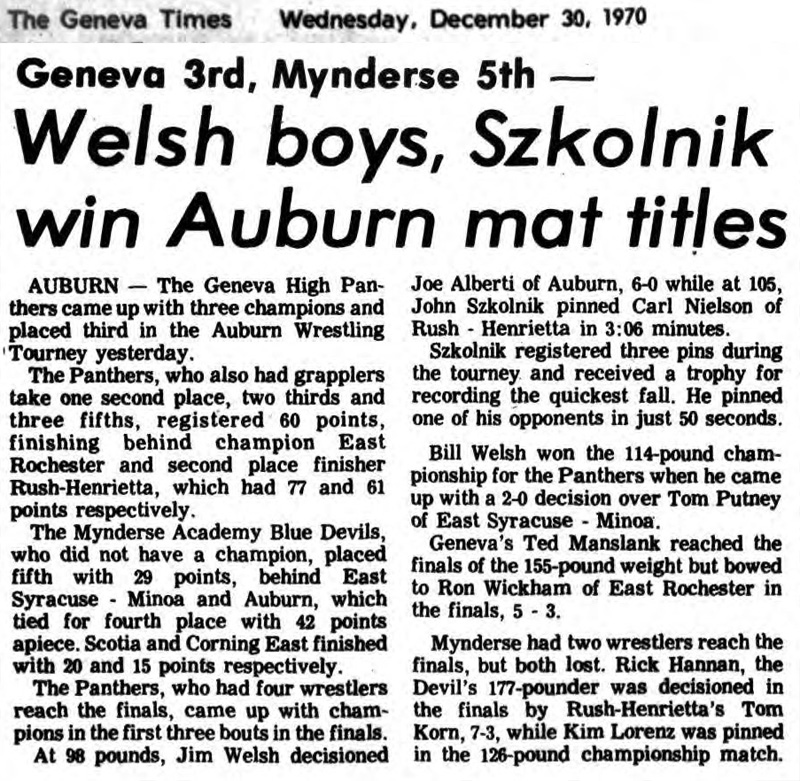 Jim Welsh (Geneva) > Joe Alberti (Auburn) decision 6-0