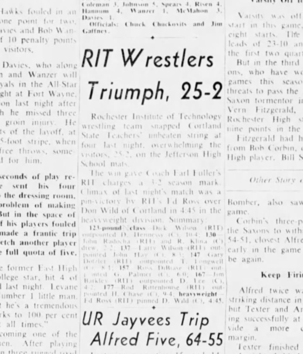 Dick Wilson (RIT) > Dave Hennessy (Cortland) decision 10-4