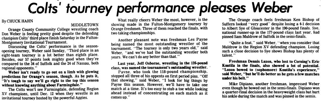 Larry Weil (GCC) > Pete Cole (Cobleskill) decision 7-5