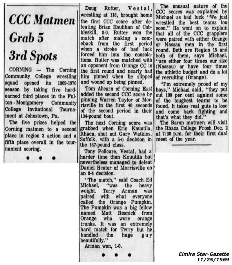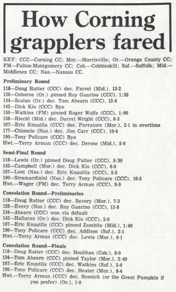 Pete Harrington (Cobleskill) > Vince Chionchio (NCC) decision 9-1