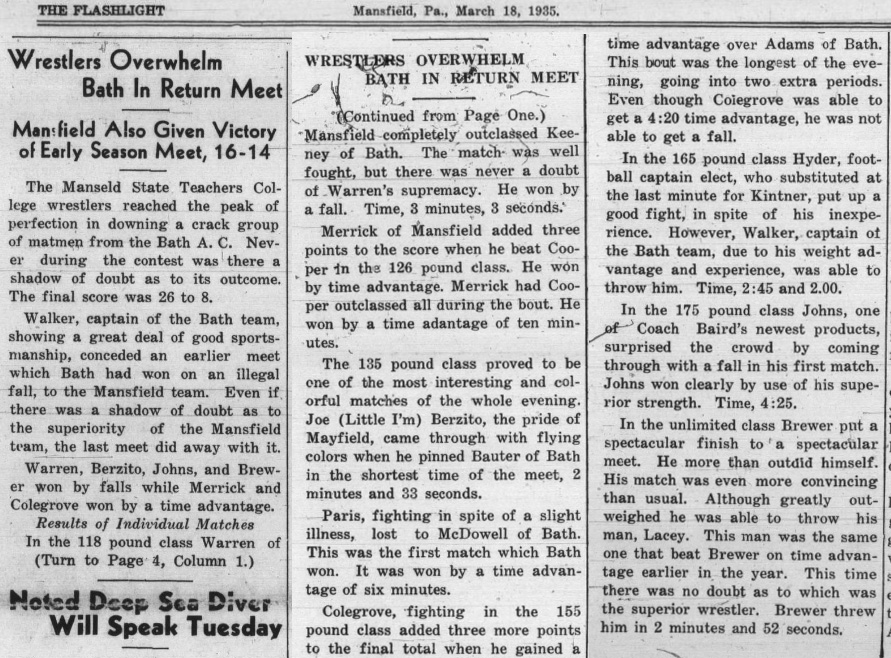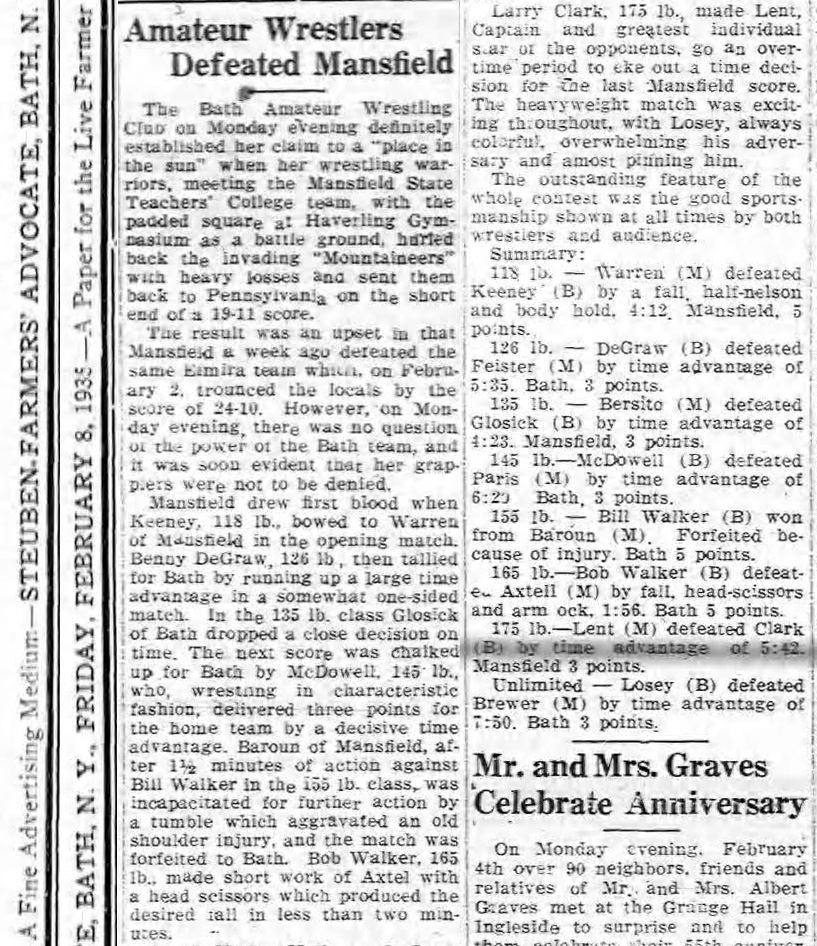 Mansfield University of Pennsylvania 16, Bath Athletic Club 14