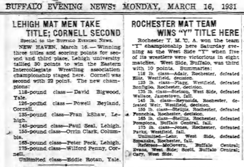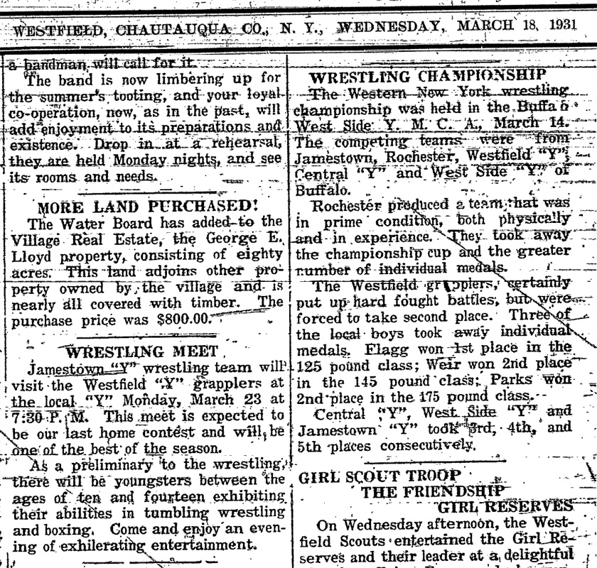 Central YMCA of Rochester [NY] 37, Westfield YMCA [NY] 11, West Side YMCA (Buffalo) [NY] 10, Central YMCA of Buffalo [NY] 3, Jamestown YMCA [NY] 3