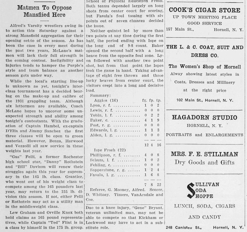 Alfred University 30.5, Mansfield University of Pennsylvania 1.5