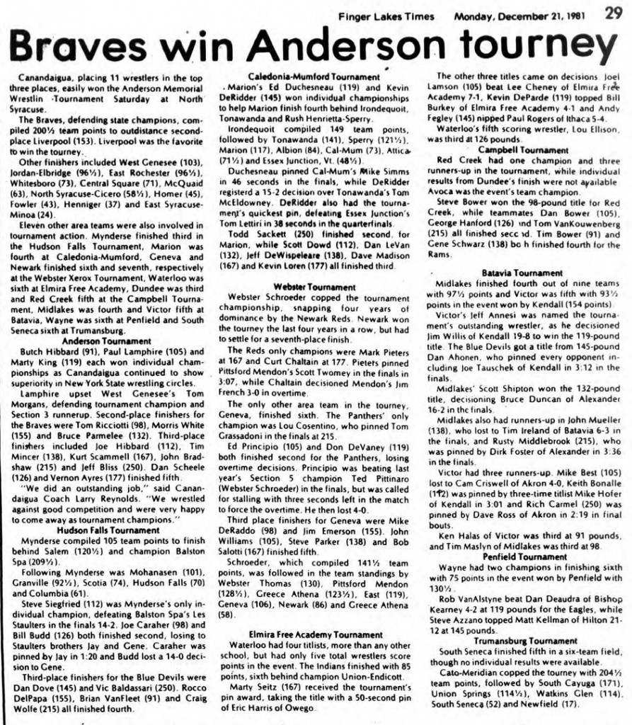 Lee Staulters (BS) > Joe Caraher (Mynderse) fall 1:20