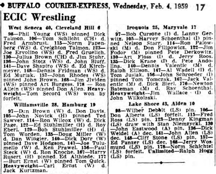 154 Ed Panzer (LS) > Joe Sturm (Alden) decision 3-0