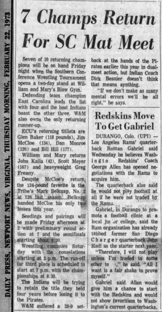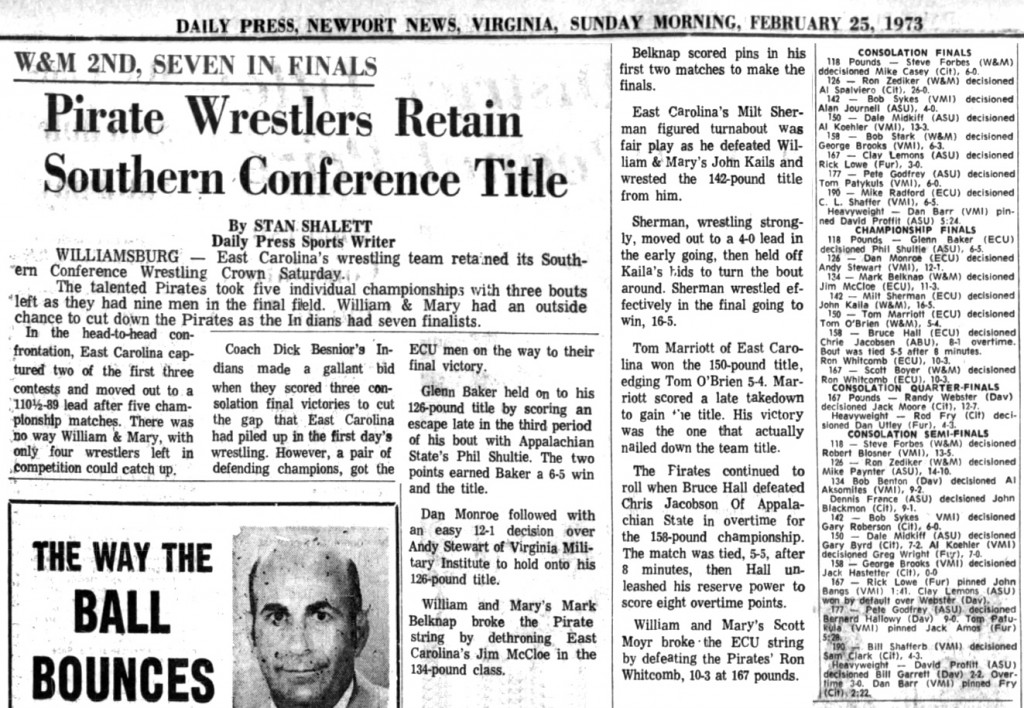 Mike Radford (ECU) > C.L. Shaffer (VMI) decision 6-5