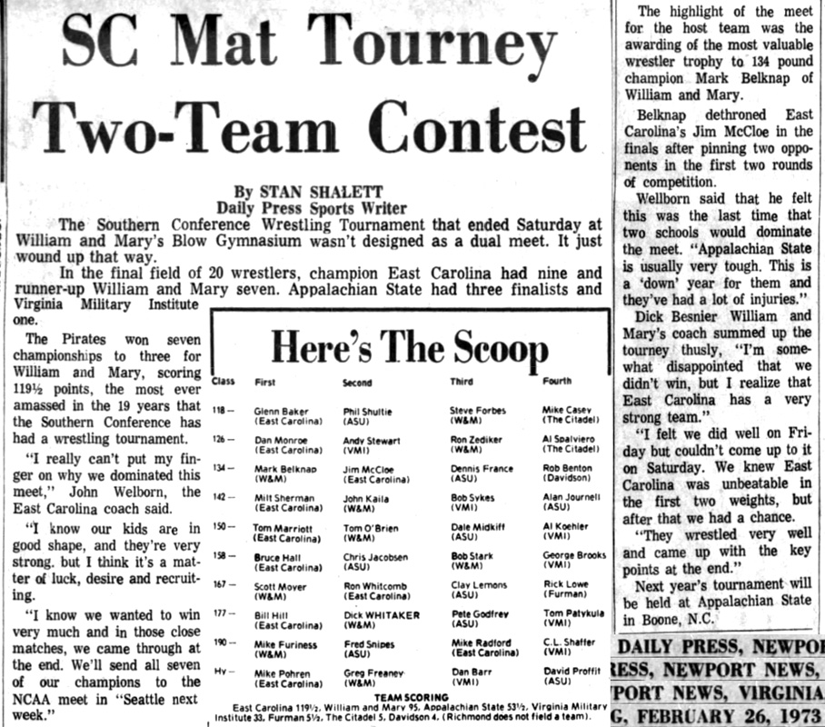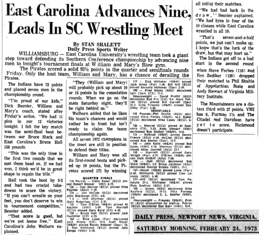 Dan Monroe (ECU) > Andy Stewart (VMI) decision 12-1