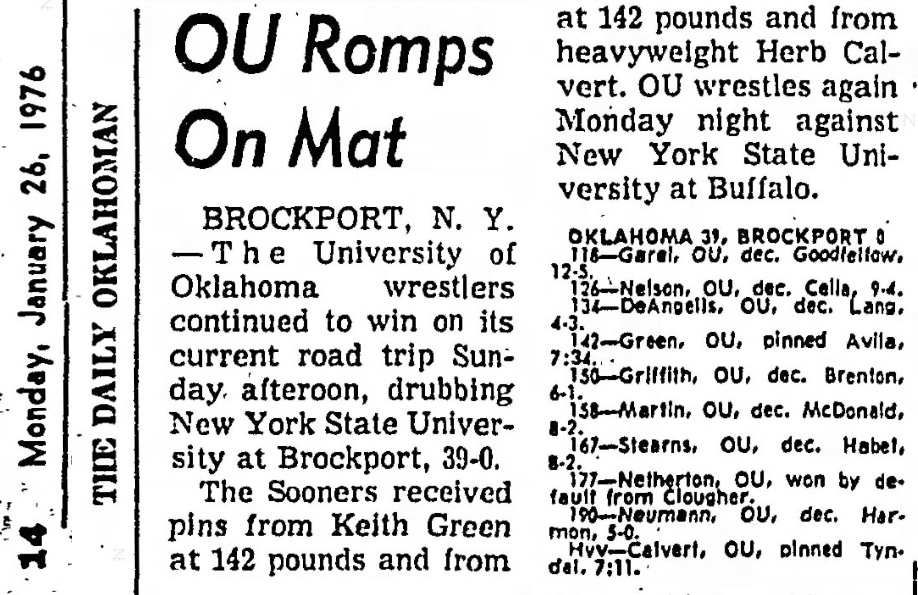 Larry Griffith (UO) > Bob Brenton (Brockport) decision 6-1