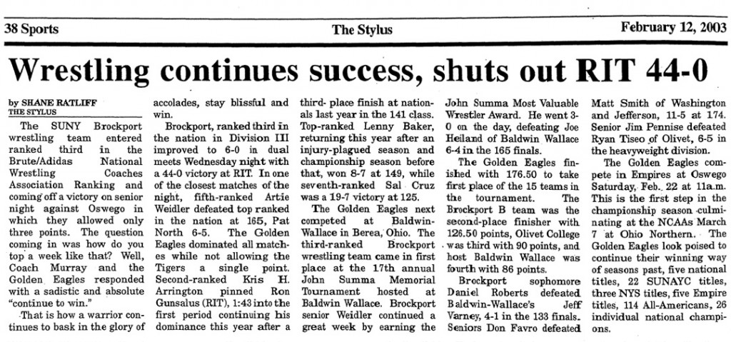 Artie Weidler (Brockport) > Pat North (RIT) decision 6-5