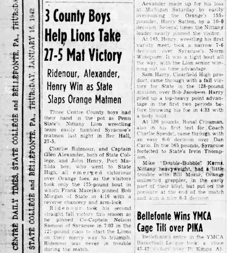 Charley Ridenour (PSU) > Nelson Samson (SU) fall 7:03