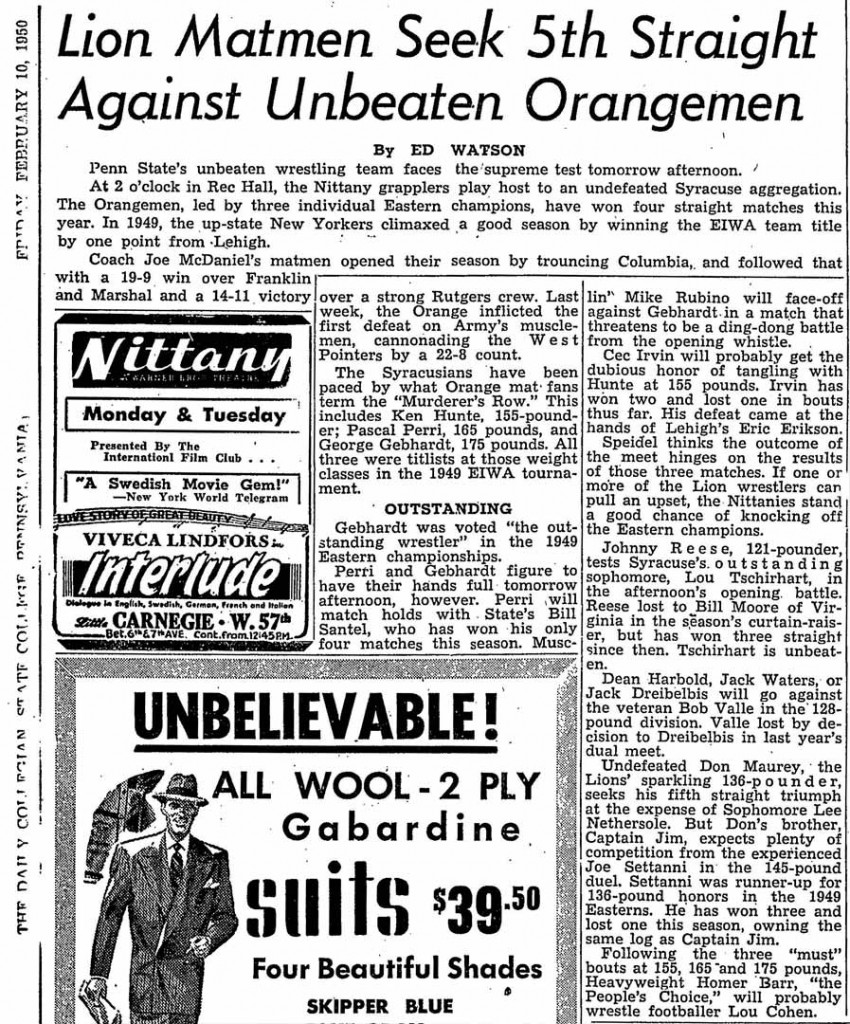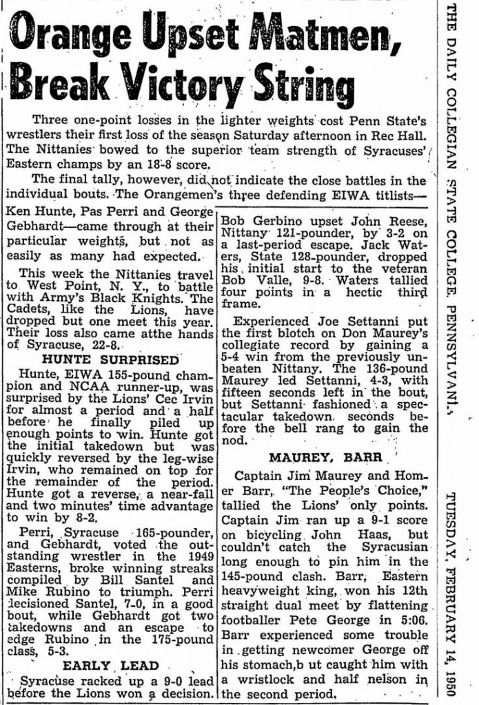 Joe Settanni (SU) > Don Maurey (PSU) decision 5-4