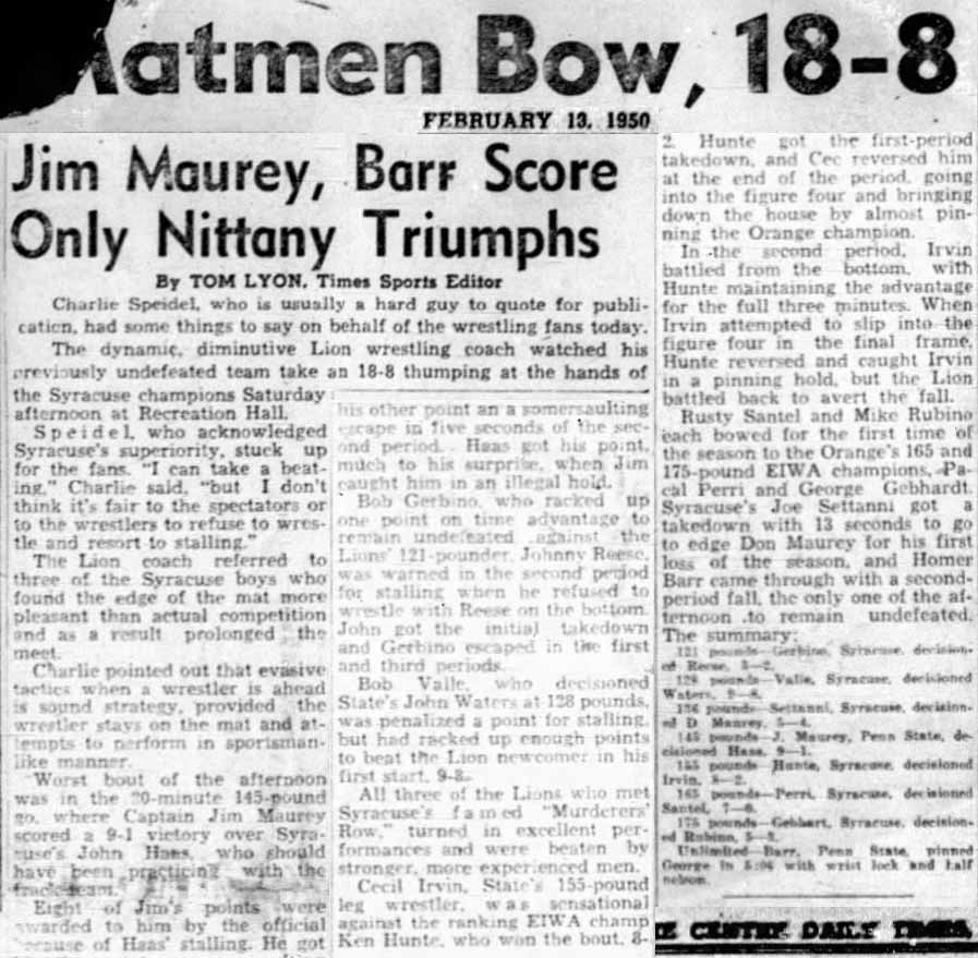 Homer Barr (PSU) > Pete George (SU) fall 5:06