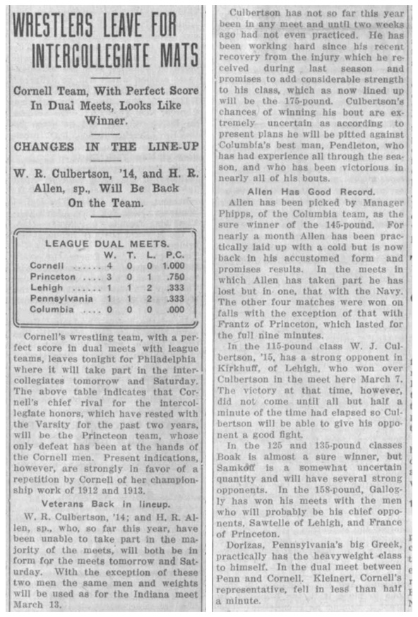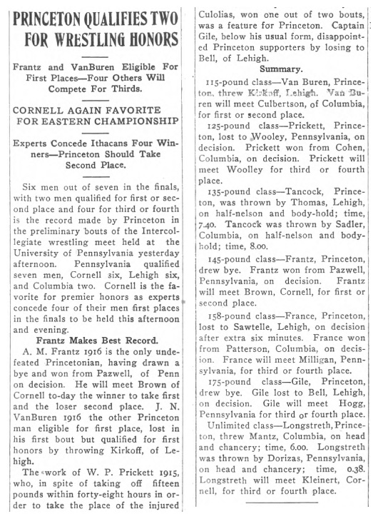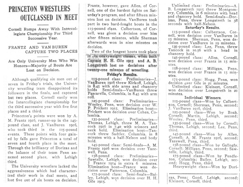 Cornell University [NY] 24, University of Pennsylvania [PA] 17, Lehigh University [PA] 12, Princeton University [NJ] 7, Columbia University [NY] 4