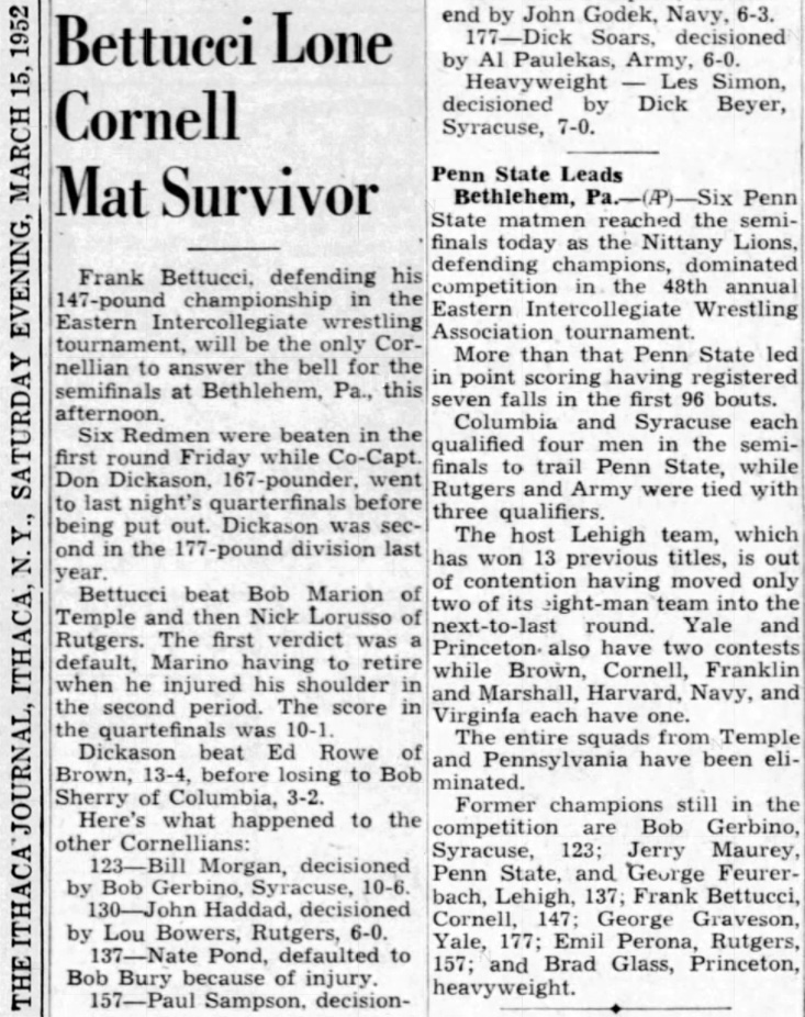177 Al Paulekas (USMA) > George Graveson (YU) decision 8-2
