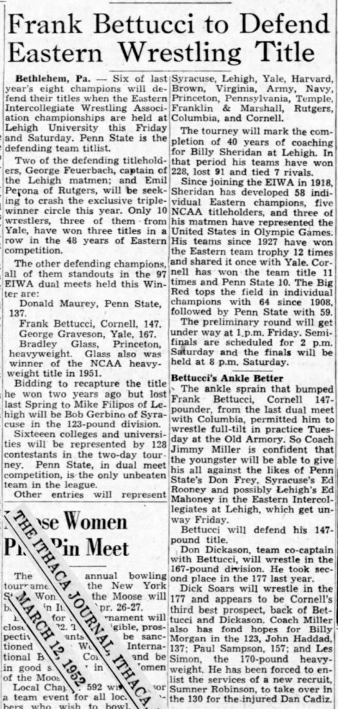 147 Frank Bettucci (CU) > Ed Rooney (SU) decision 9-6
