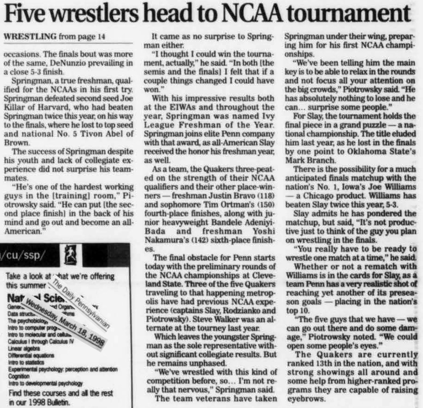 Tivon Abel (BU) > Rick Springman (UP) decision 6-3