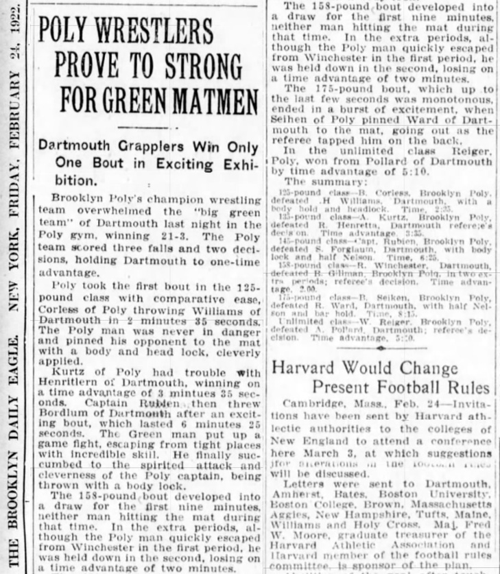 Polytechnic Institute of Brooklyn 21, Dartmouth College 3