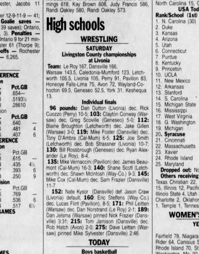96 Dan Dutton (Livonia) > Rich Cuozzo (Perry) decision 10-5
