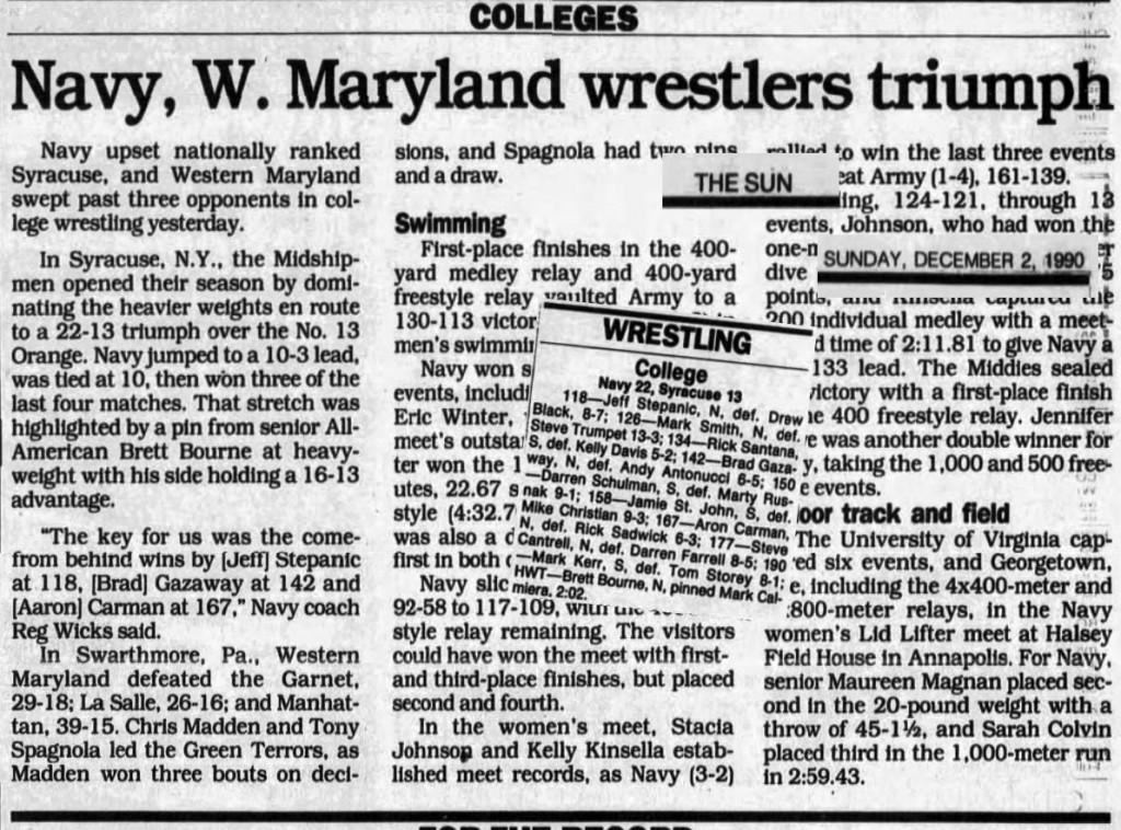 Mark Smith (USNA) > Steve Trumpet (SU) major decision 13-3
