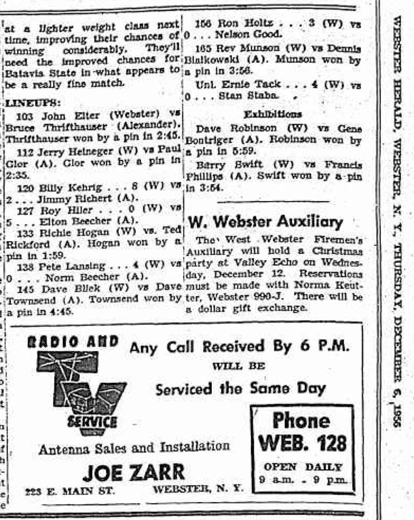 120 Dave Robinson (Webster) > Gene Bontriger (Alexander) fall 5:59
