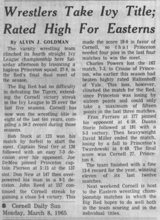 Cornell University  27, Princeton University 8