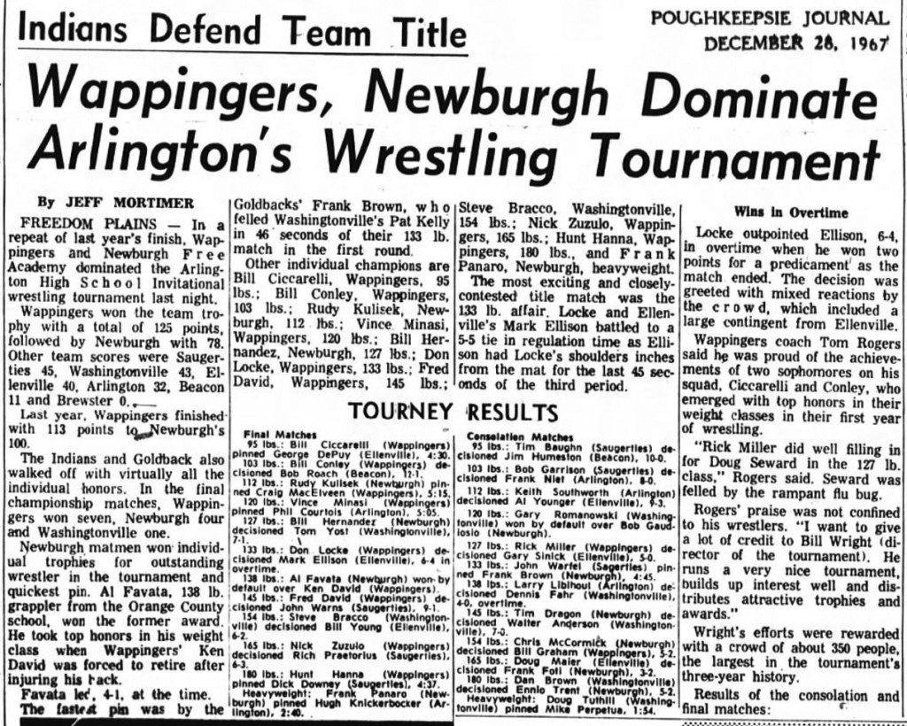 Roy C. Ketcham [NY] 125, Newburgh [NY] 78, Saugerties [NY] 45, Washingtonville [NY] 43, Ellenville [NY] 40, Arlington [NY] 32, Beacon [NY] 11,