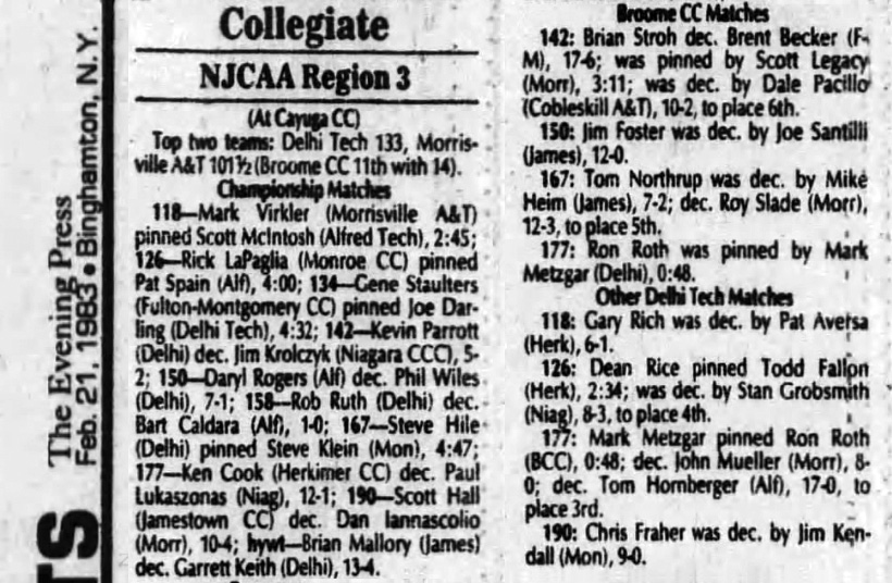 Steve Hile (Delhi) > Steve Klein (MCC) fall 4:47