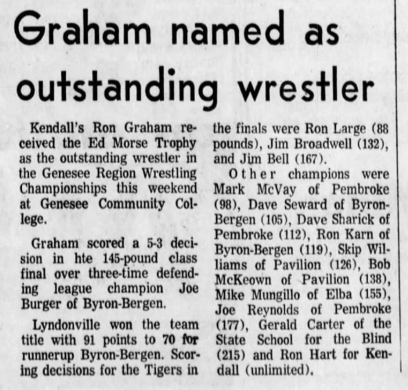Ron Large (Lyndonville) > Paul Sharick (Pembroke) decision 9-3