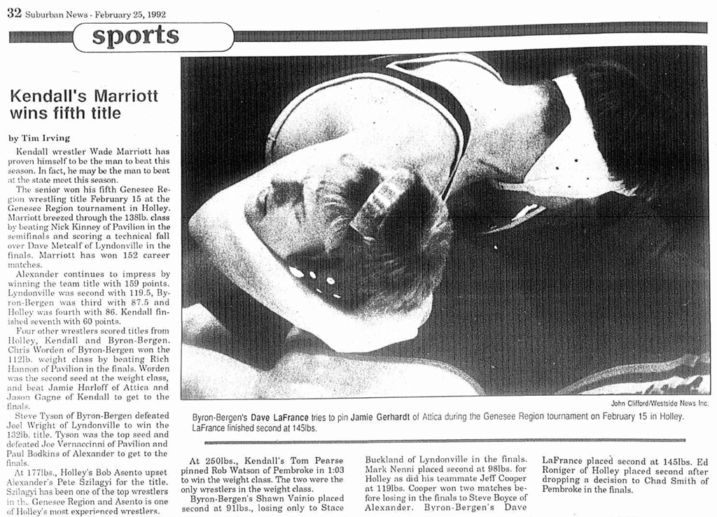 Jim Marion (Kendall) > Bill Gerhardt (Attica) decision 4-3