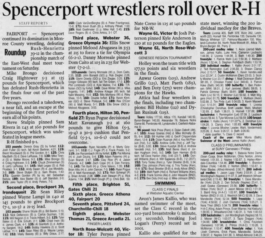 Dave Heschke (Holley) > Ryan Clark (Attica) decision 8-2