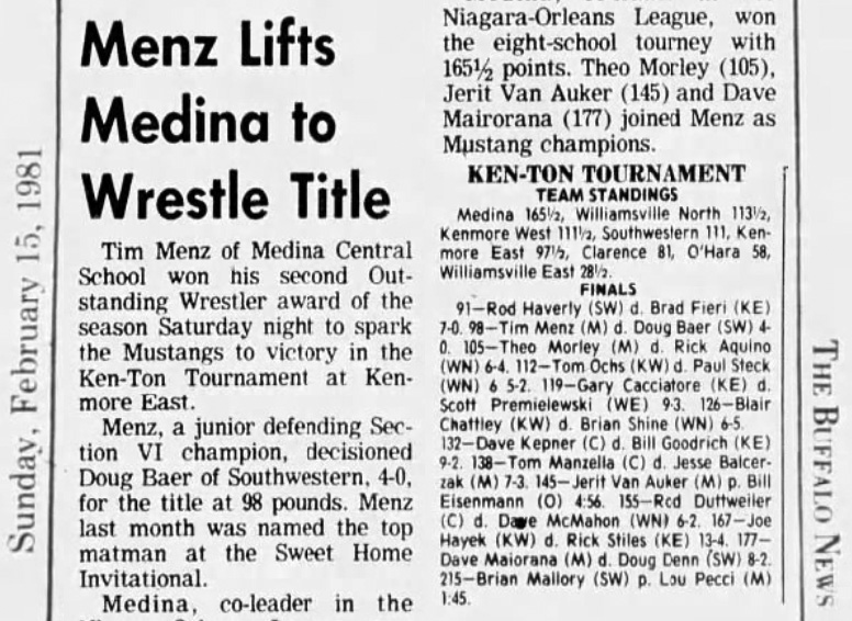 98 Tim Menz (Medina) > Doug Baer (Southwestern) decision 4-1