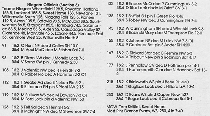 Vince Sarno (Southwestern) > Jim Kennedy (Salamanca) fall 2:30