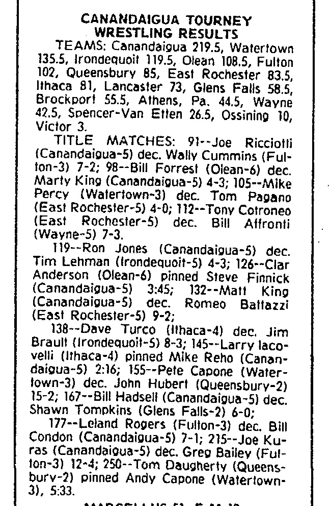 Joe Ricciotti (Canandaigua) > Wally Cummins (Fulton) decision 7-2