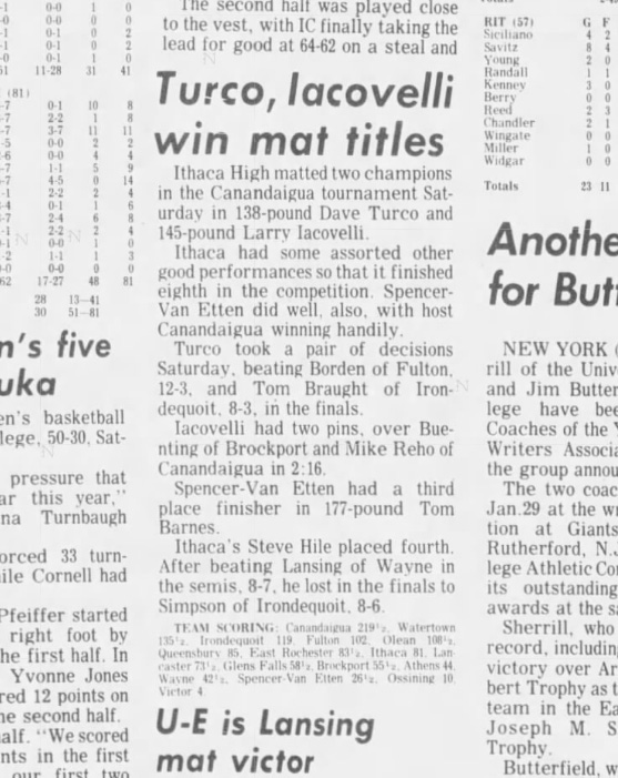 Larry Iacovelli (Ithaca) > Mike Reho (Canandaigua) fall 2:34