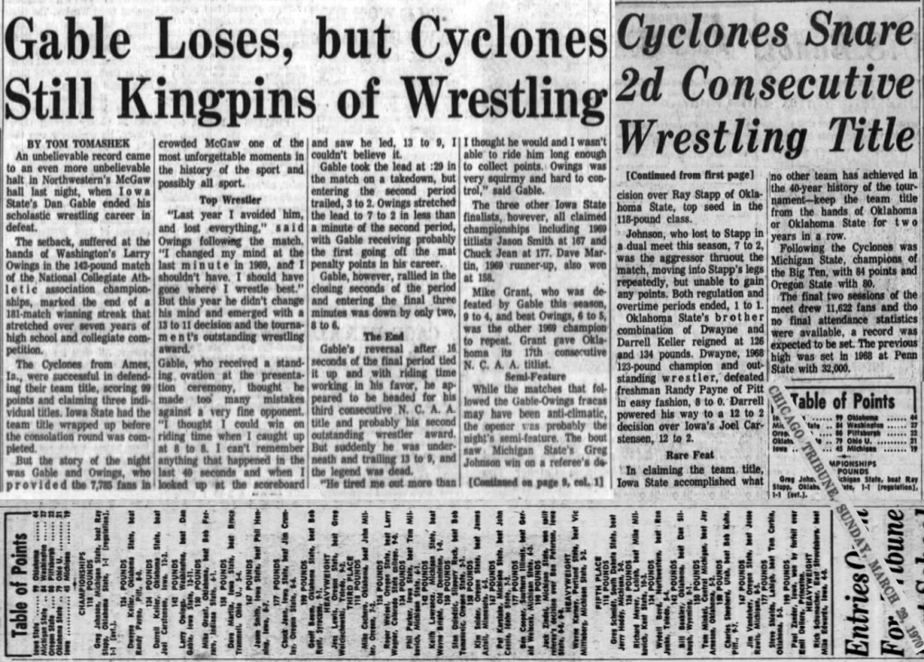 Larry Owings (UW) > Dan Gable (ISU) decision 13-11