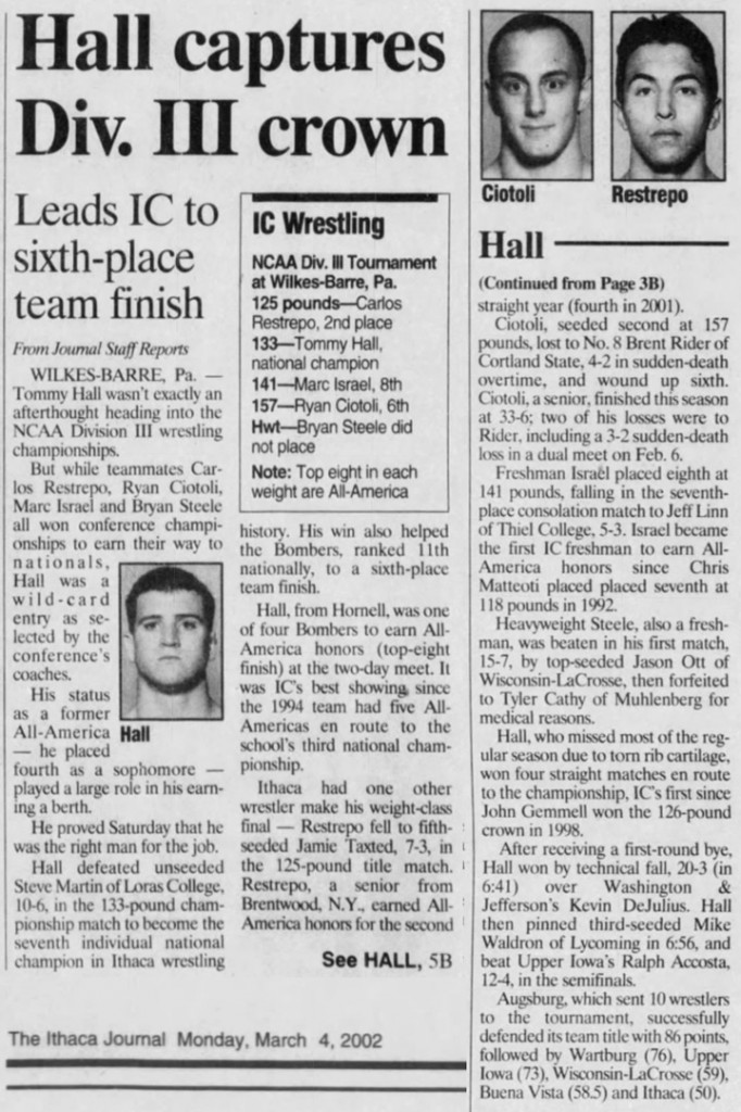 Brent Rider (Cortland) > Ryan Ciotoli (IC) decision 3-2 (1OT)