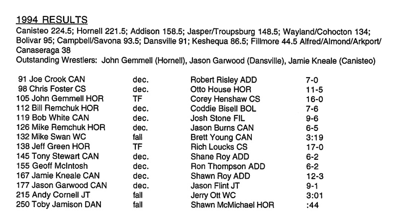 Mike Remchuk (Hornell) > Jason Burns (Canisteo) decision 6-5