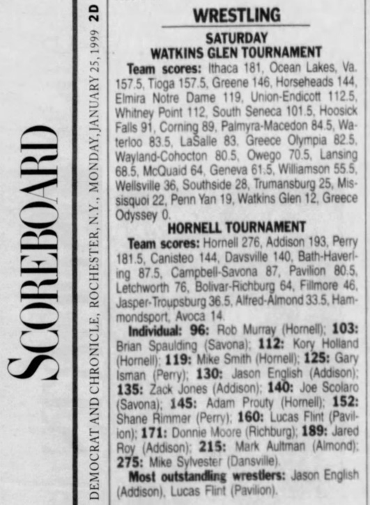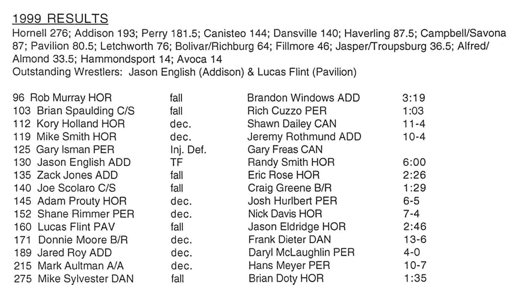 119 Mike Smith (Hornell) > Jeremy Rothmund (Addison) decision 10-4