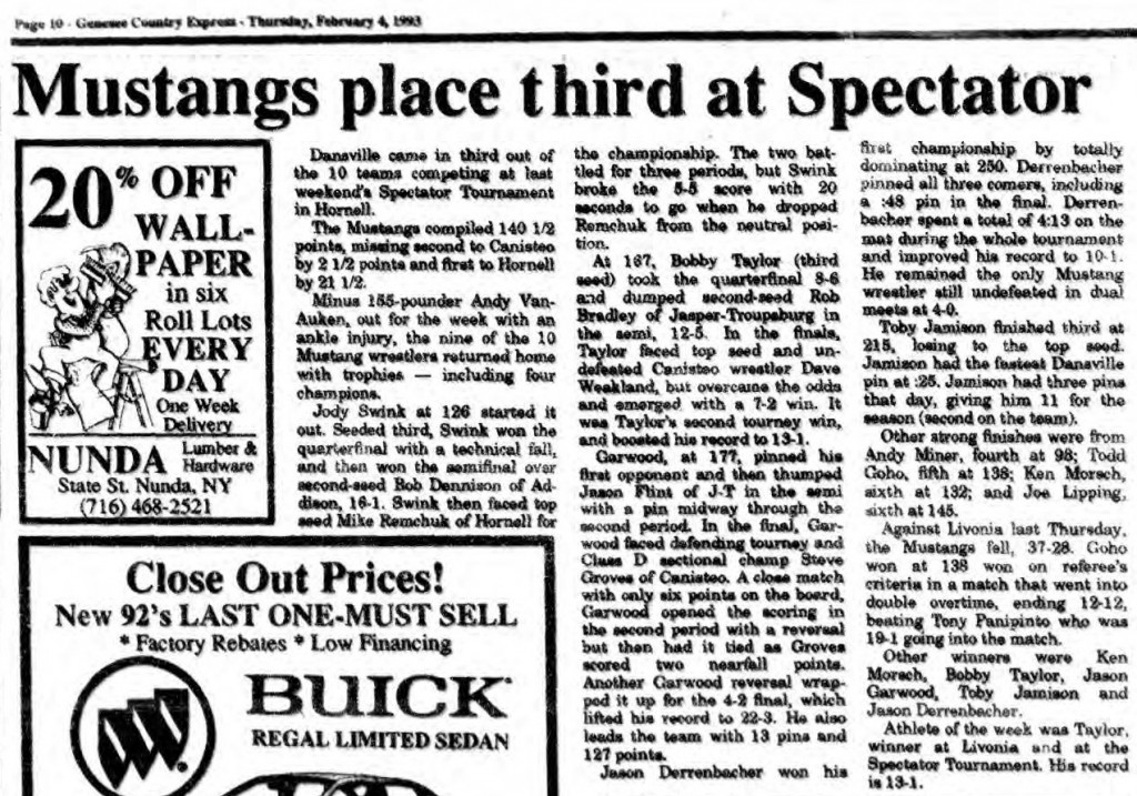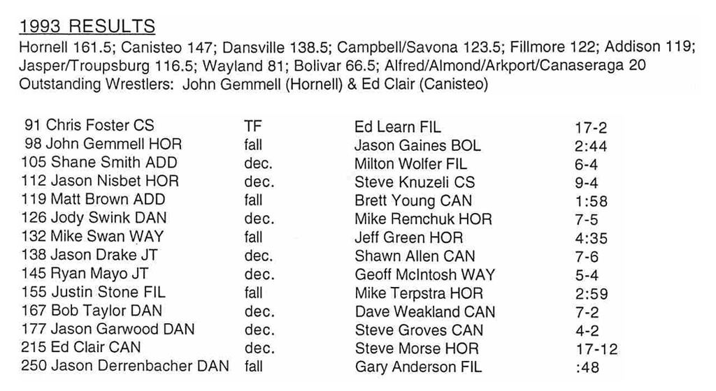 Bobby Taylor (Dansville) > Dave Weakland (Canisteo) decision 7-2
