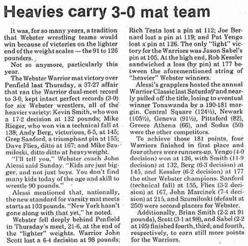 Kevin Smith (Webster) > Brian Laprade (Pittsford) decision 11-9