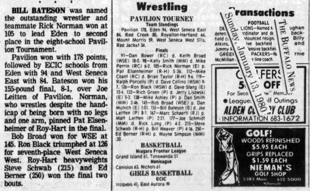 Rick Green (Pavilion) > Jerry Lisowsky (Eden) decision 5-3