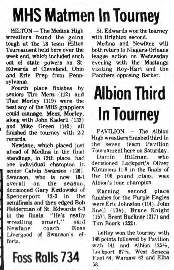 Todd Rose (Lockport) > Bruce Knight (Albion) fall 3:54