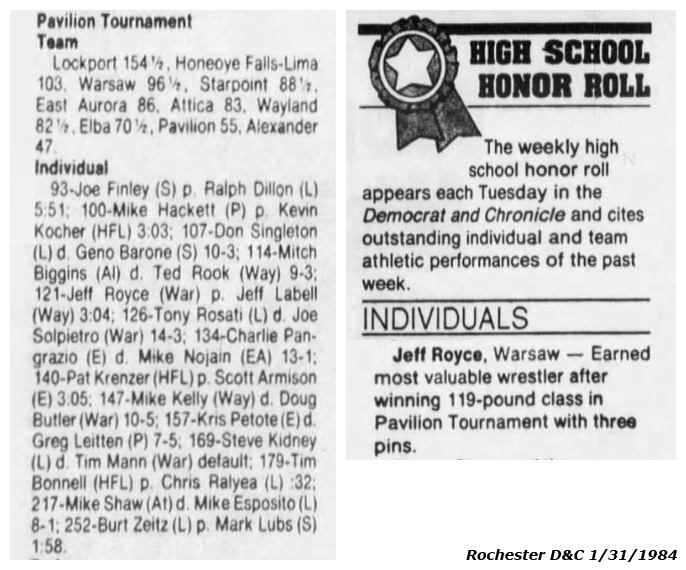 Tony Rosati (Lockport) > Joe Solpietro (Warsaw) major decision 14-3