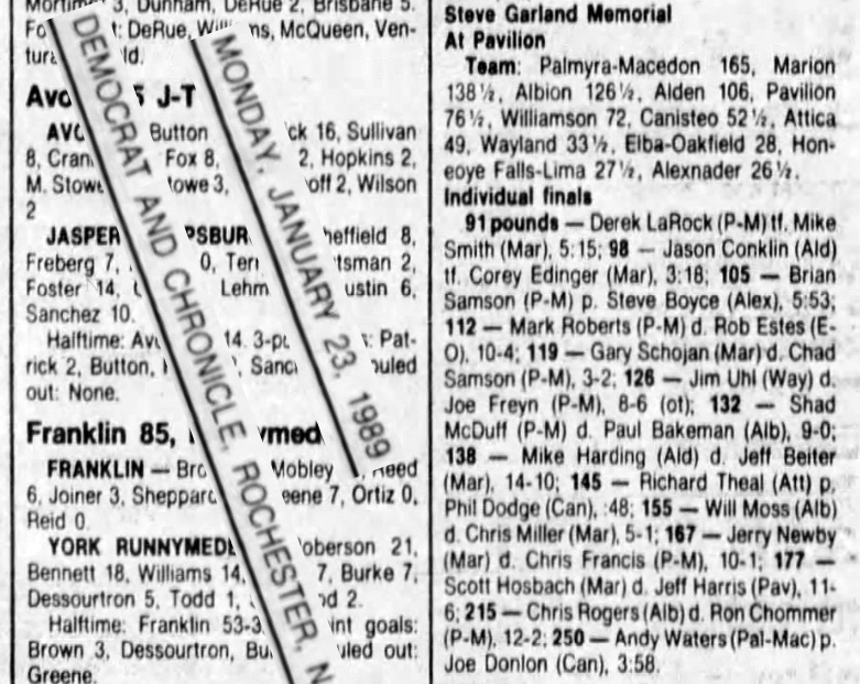 Andy Waters (PM) > Joe Donlon (Canisteo) fall 3:58