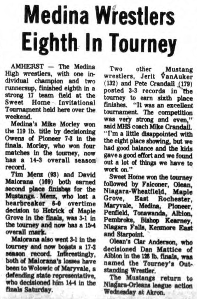 Ron Wolowiec (Maryvale) > Dave Maiorana (Medina) major decision 14-4