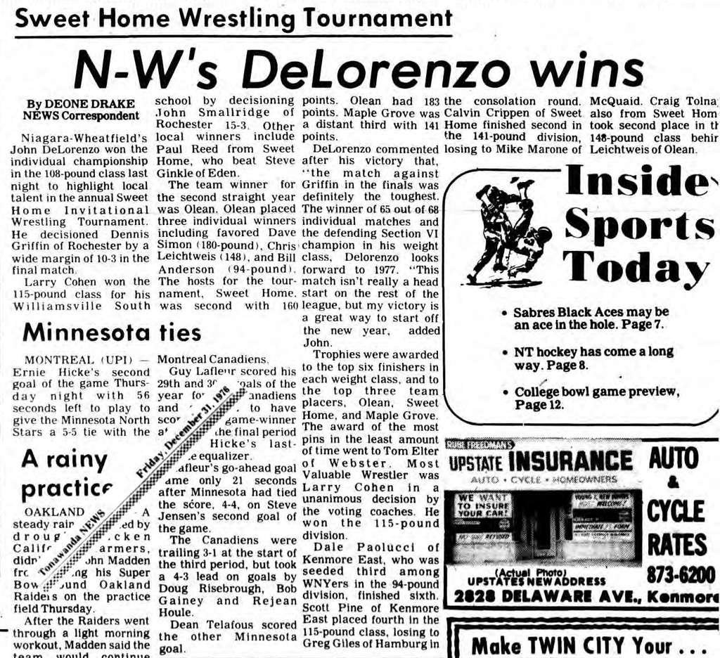 91 Clar Anderson (Olean) > Charles Morley (Medina) decision 2-0