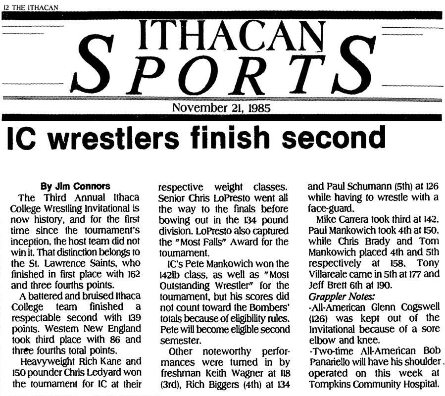 3rd Annual Ithaca College Invitational Wrestling Tournament